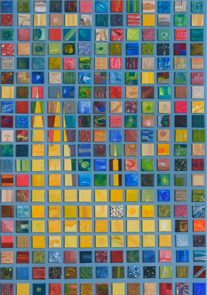Dom Bilder Dombild 07 Bild 13 von 20 70 x 100 cm - 260 mit Acryl bemalte 4x4cm große Malkartons mit Baumwollgewebe, geklebt auf Leinwand mit Acryl